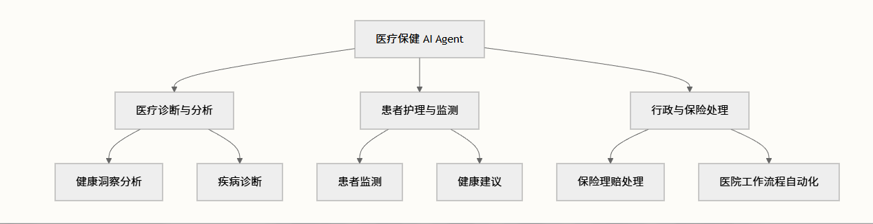 医疗保健领域已成为 AI Agent 实施的关键领域,其应用范围从临床诊断到行政自动化。根据本仓库中的精选集合,医疗保健 AI Agent 可分为三个主要功能领域: