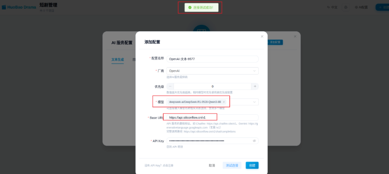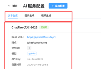 先配置模型API地址,选择模型,文字,生图,生视频,只配置一遍即可(这里可以用字节或者阿里的一些模型,如果你自己有部署也可以试试),这里我都是基于硅基流动的api去配置。