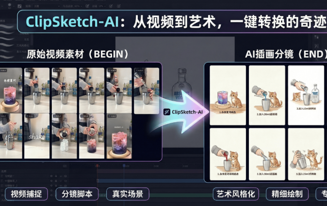 ClipSketch AI 是一个专为视频创作者、社交媒体运营者和二创爱好者设计的全流程生产力工具。